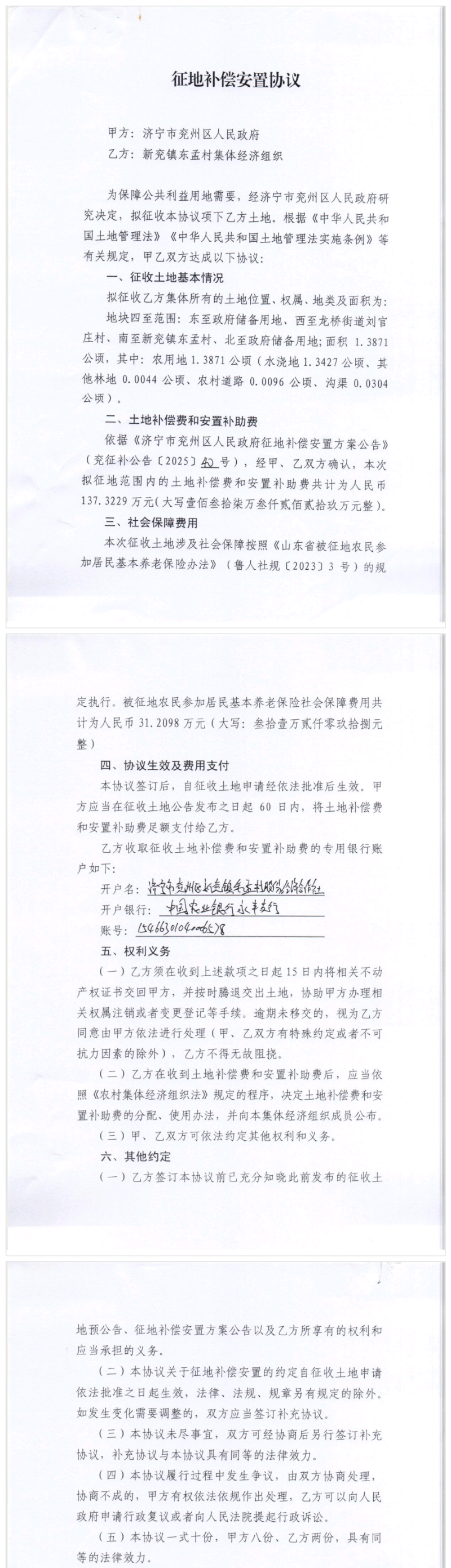 征地补偿安置协议(所有权人) 新兖镇东孟村