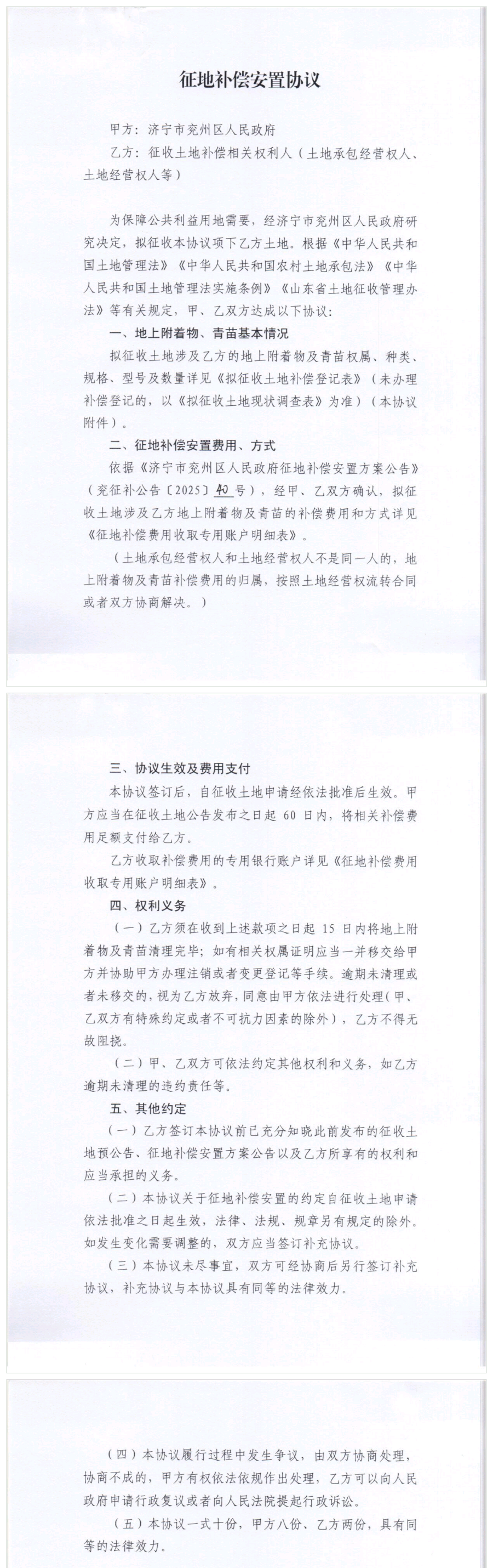 征地补偿安置协议(承包经营权人)新兖镇东孟村