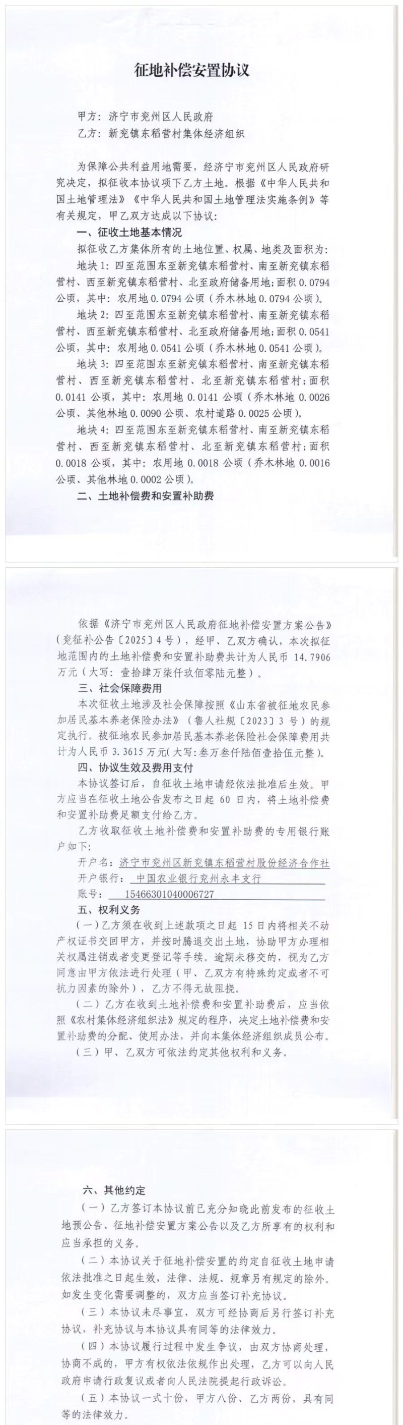 征地补偿安置协议(所有权人)(东稻营村)