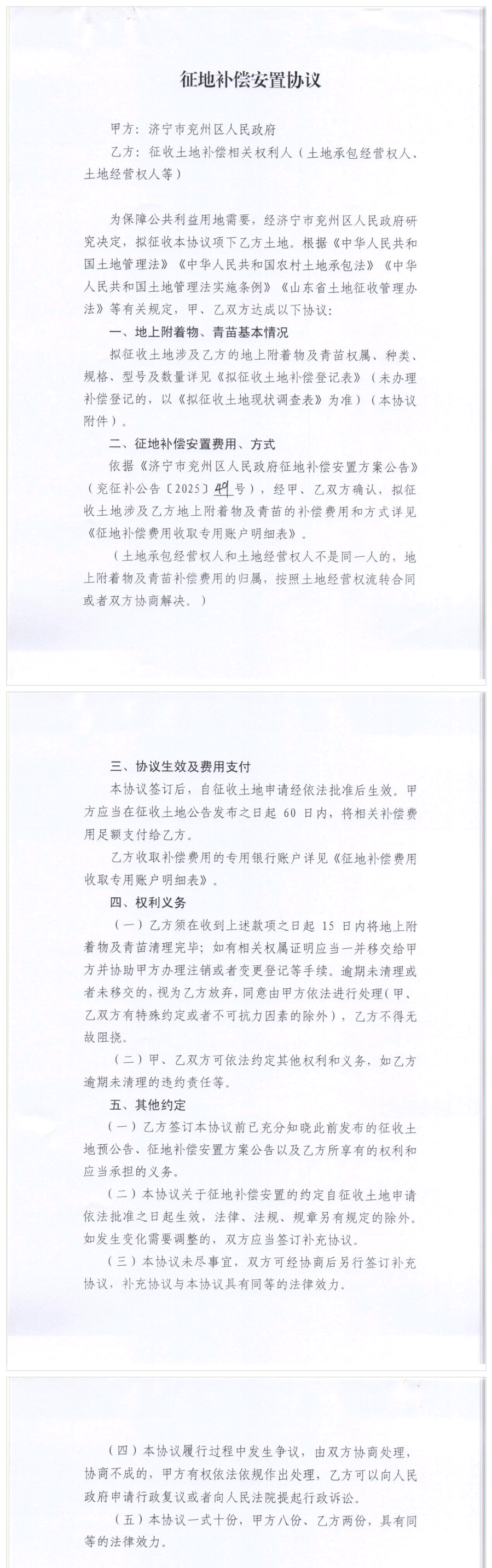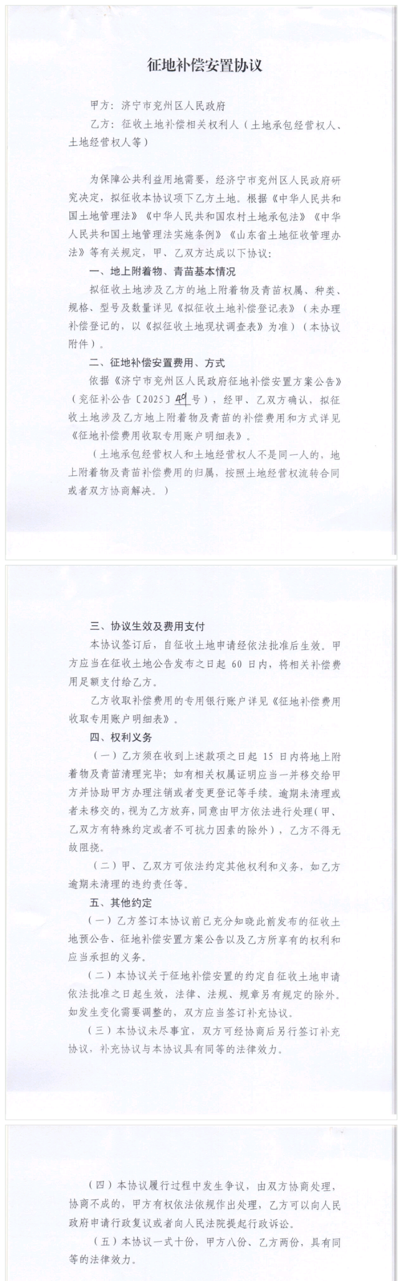 征地补偿安置协议(承包经营权人)颜店镇袁三村