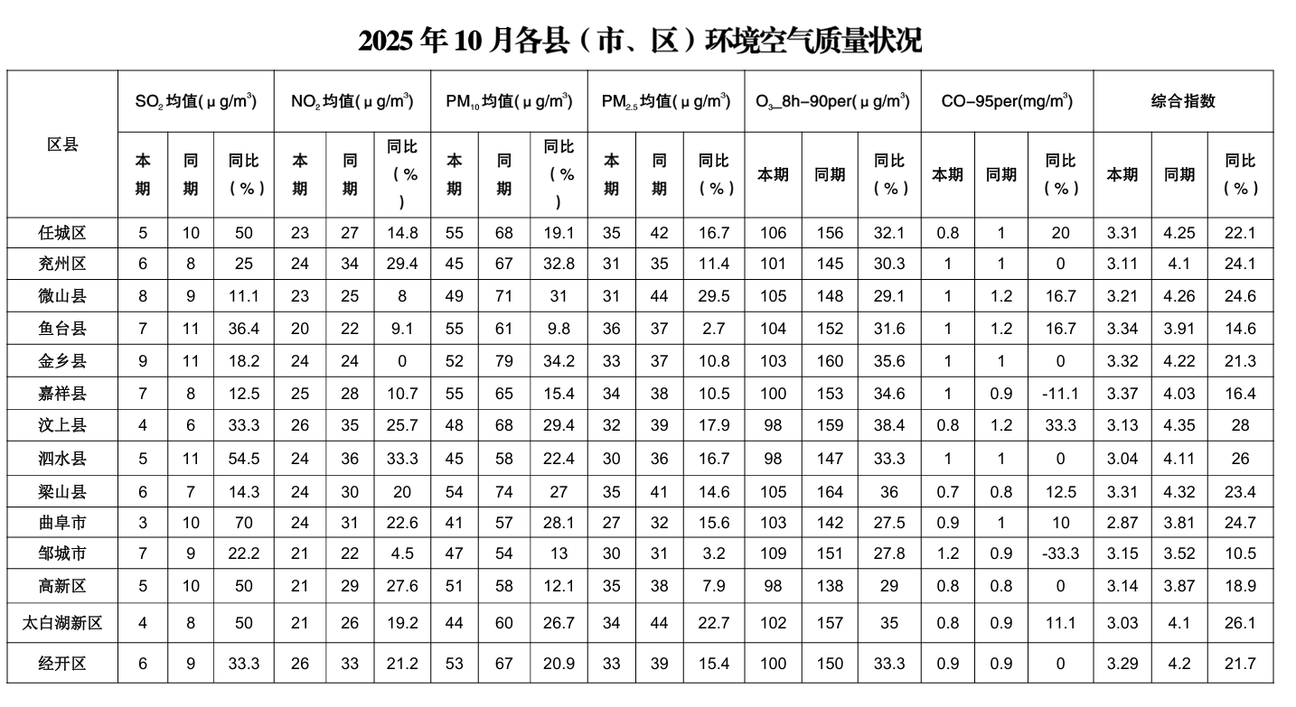 2025年10月份环境空气质量状况