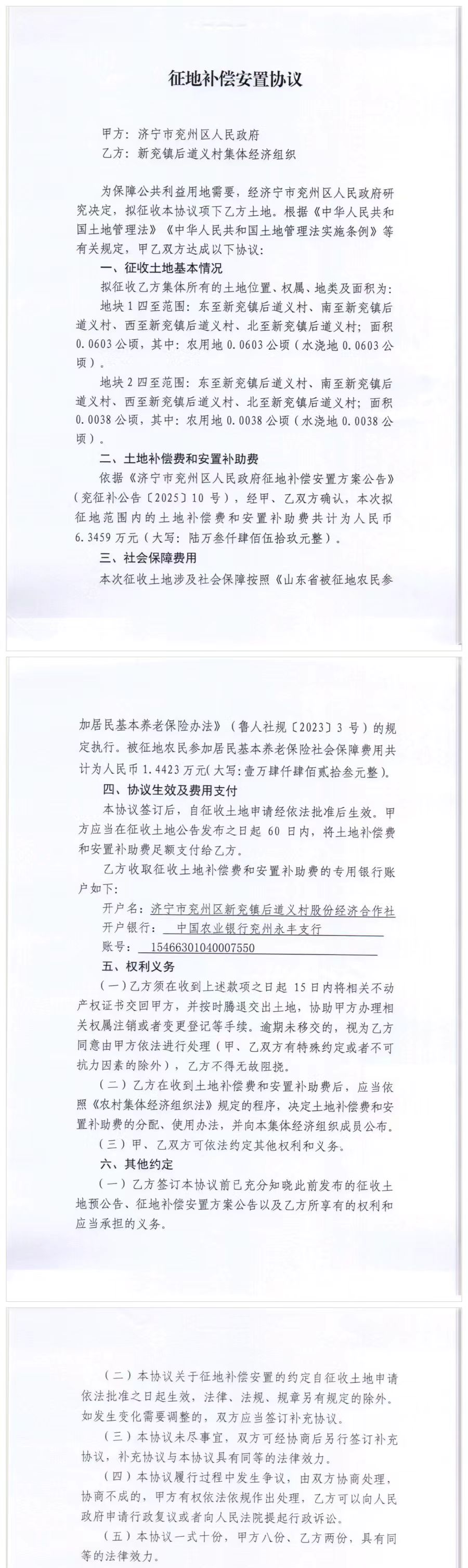 征地补偿安置协议(所有权人)新兖镇后道义村