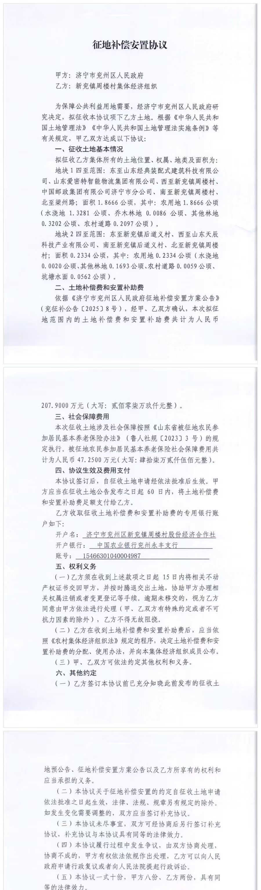 征地补偿安置协议(所有权人)新兖镇周楼村