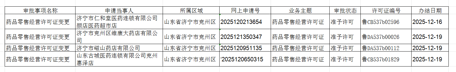 兖州区2025年药品零售许可企业基本信息(28)