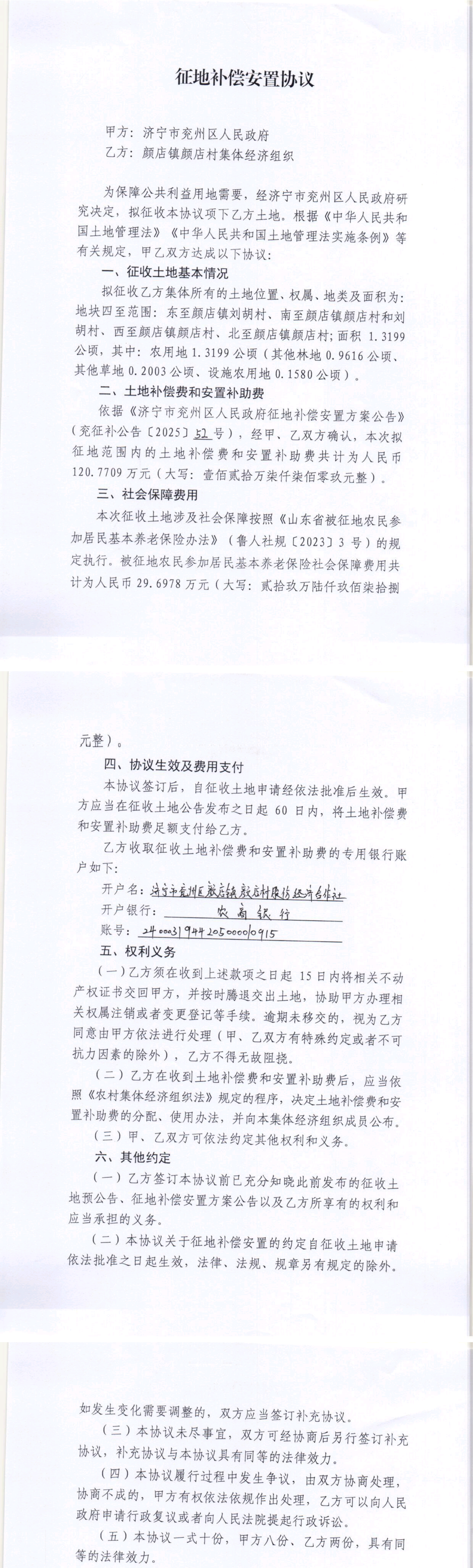 征地补偿安置协议(所有权人)颜店镇颜店村