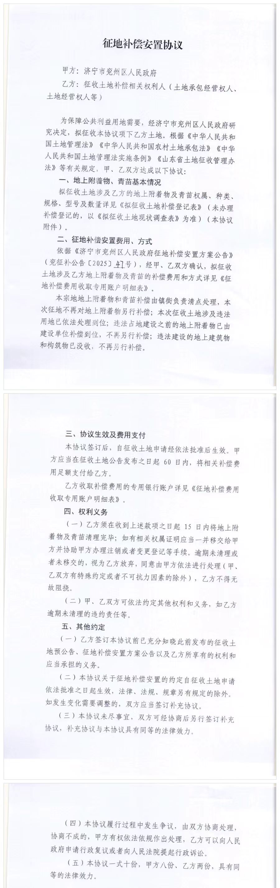 征地补偿安置协议(承包经营权人)新兖镇沈官屯村