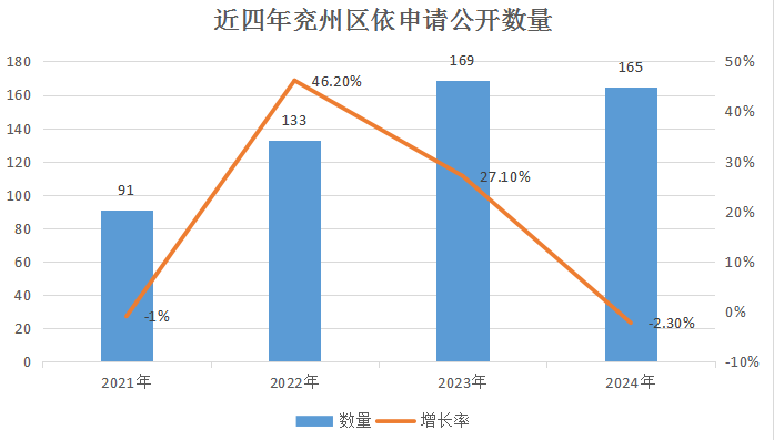 不断健全依申请公开办理流程,探索推行依申请办理“3层联动工作法”,按照办理难度,逐层审核把关。2024年全区收到依申请公开165件,同比减少4件,上年结转3件,全年办理完成151件,结转下年继续办理17件。