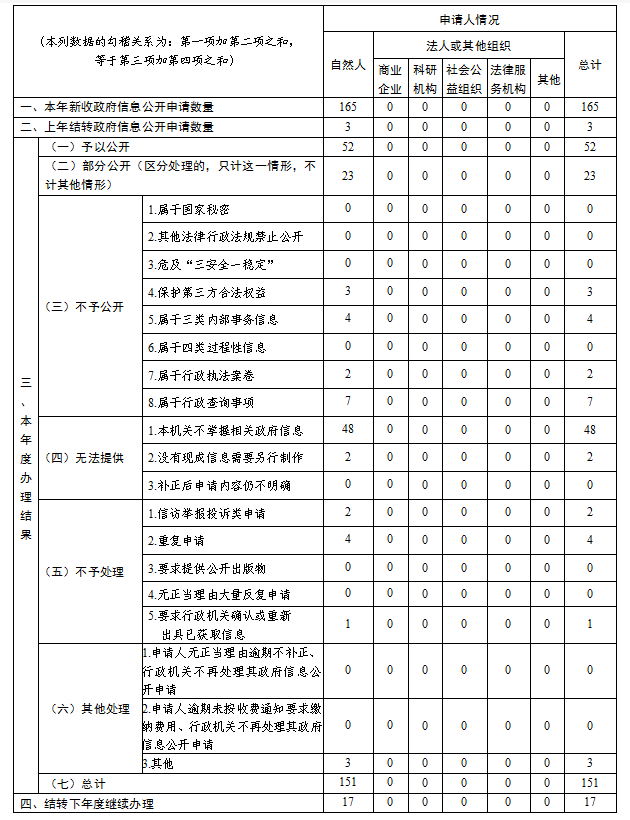 (五)本行政机关政府信息公开工作年度报告数据统计需要说明的事项: