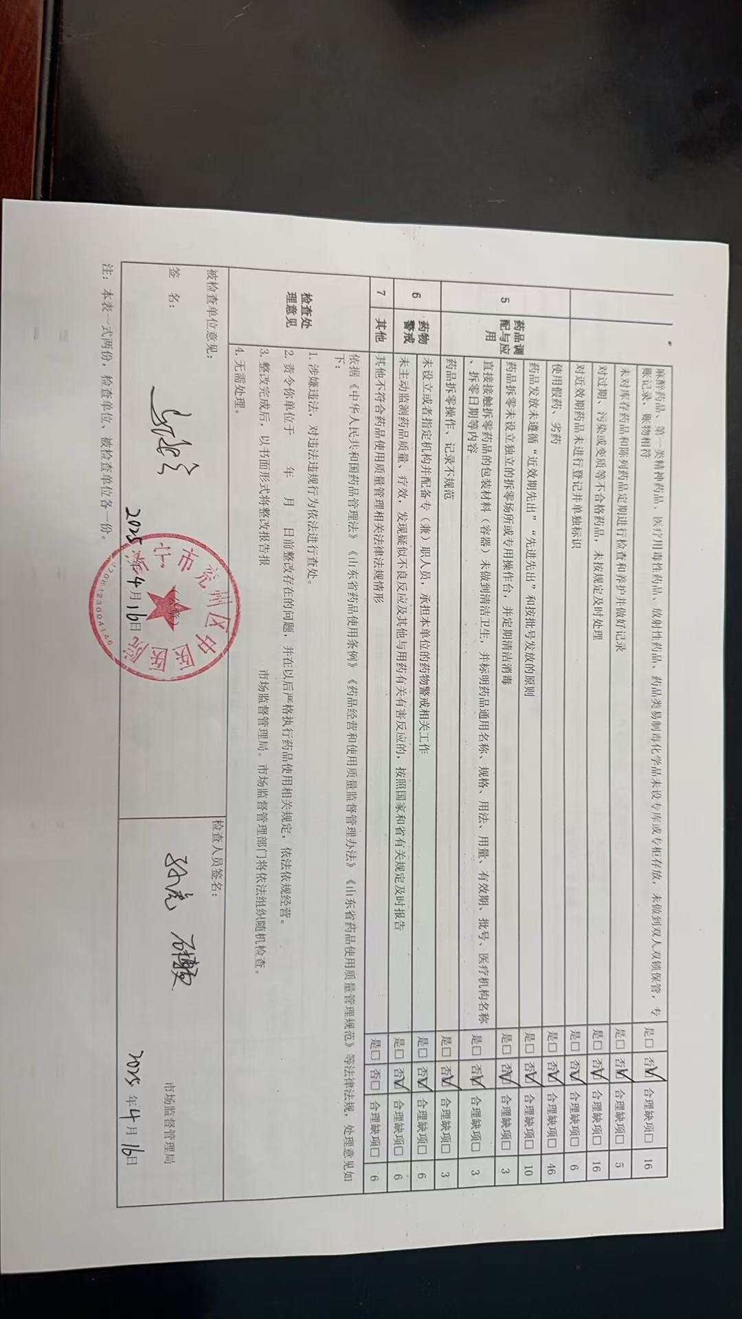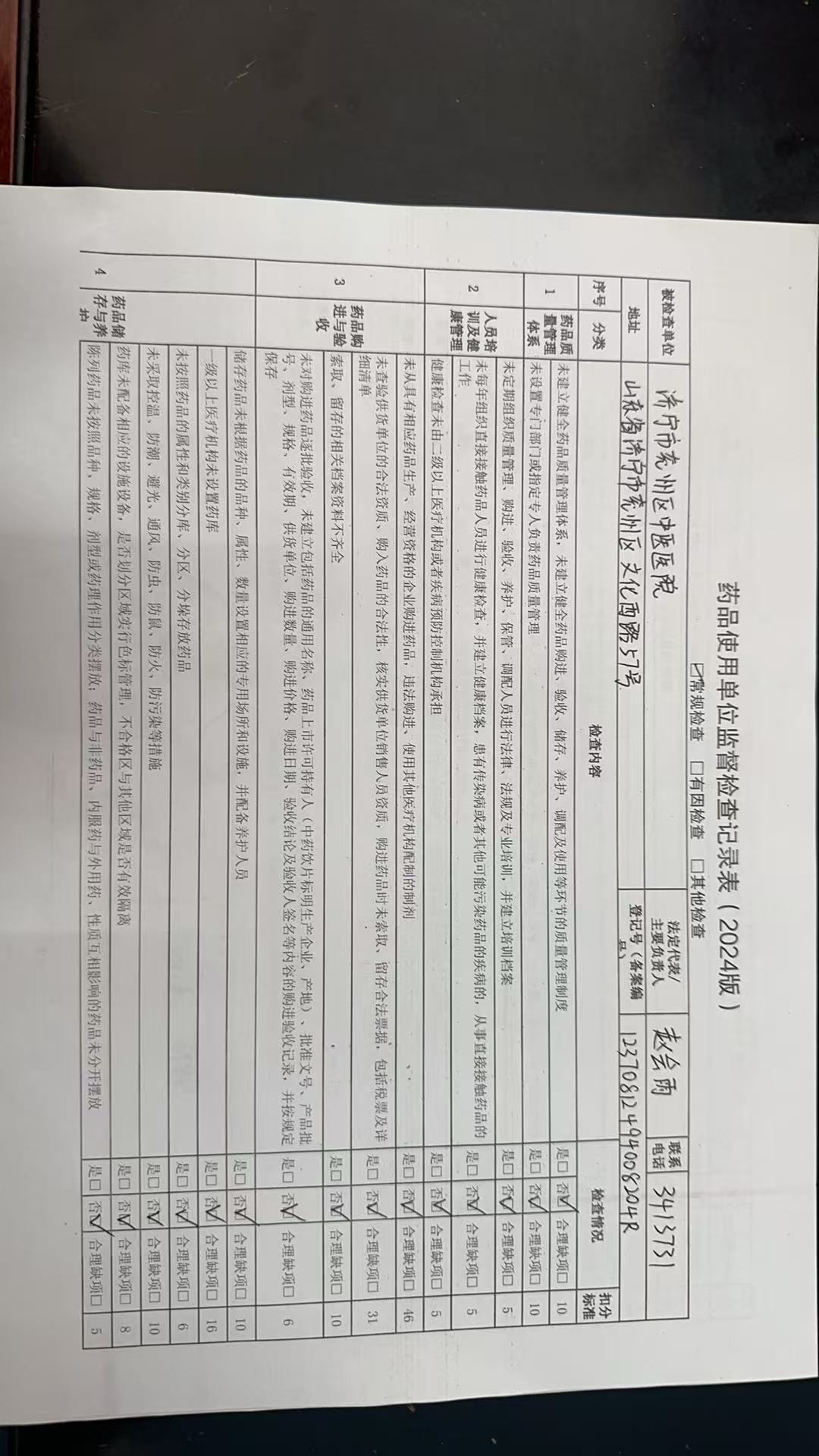 【药品使用单位监督检查结果】济宁市兖州区中医医院检查记录表