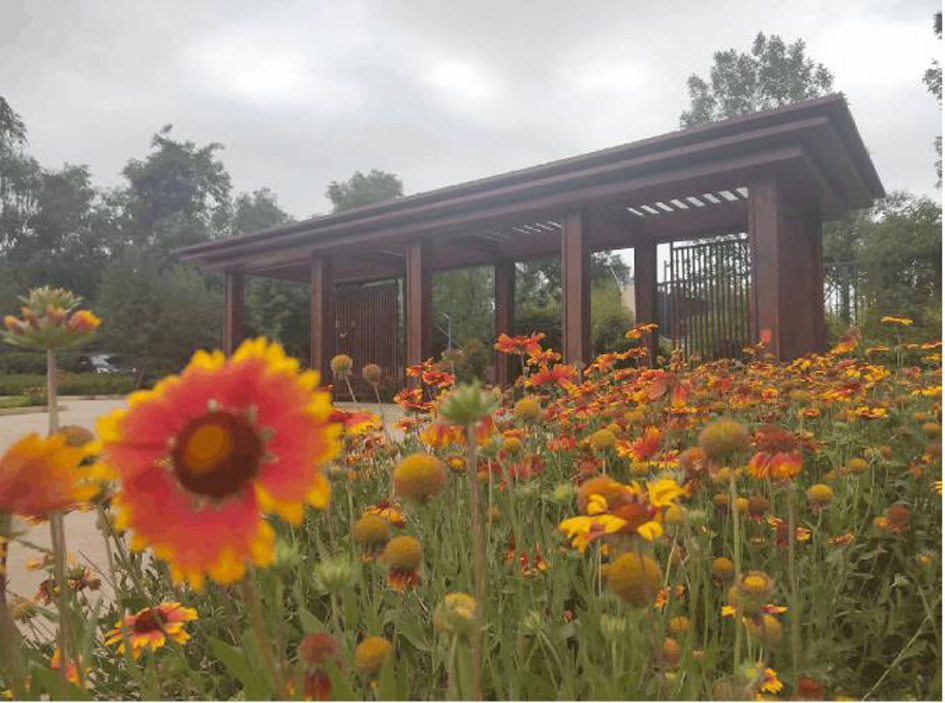在少陵公园,波斯菊以洁白、橙黄与玫红等交织成跃动的音符,孔雀草的金色圆盘向阳而生,麦蓝菜则以淡雅粉色调和纤细茎叶演绎静谧之美。