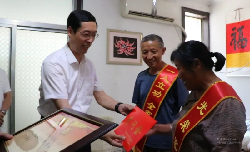 在立功现役军人家庭,区领导为现役军人家属送去了立功喜报和慰问金,详细询问立功现役军人在部队的表现、生活情况。