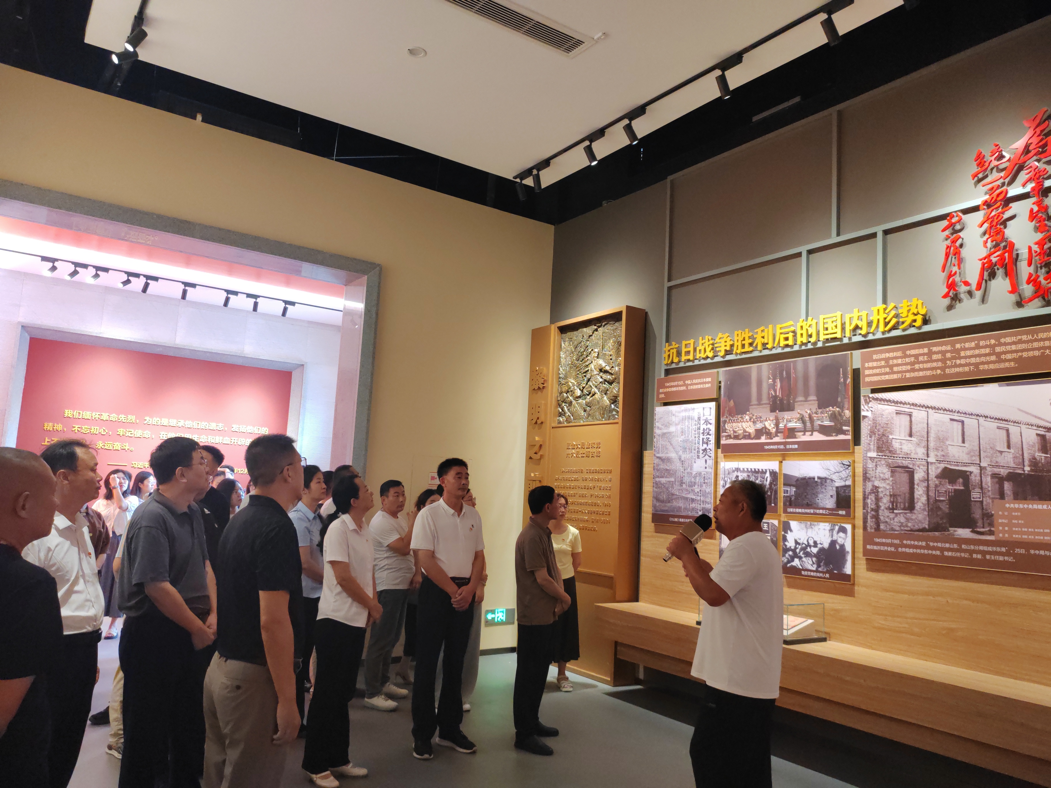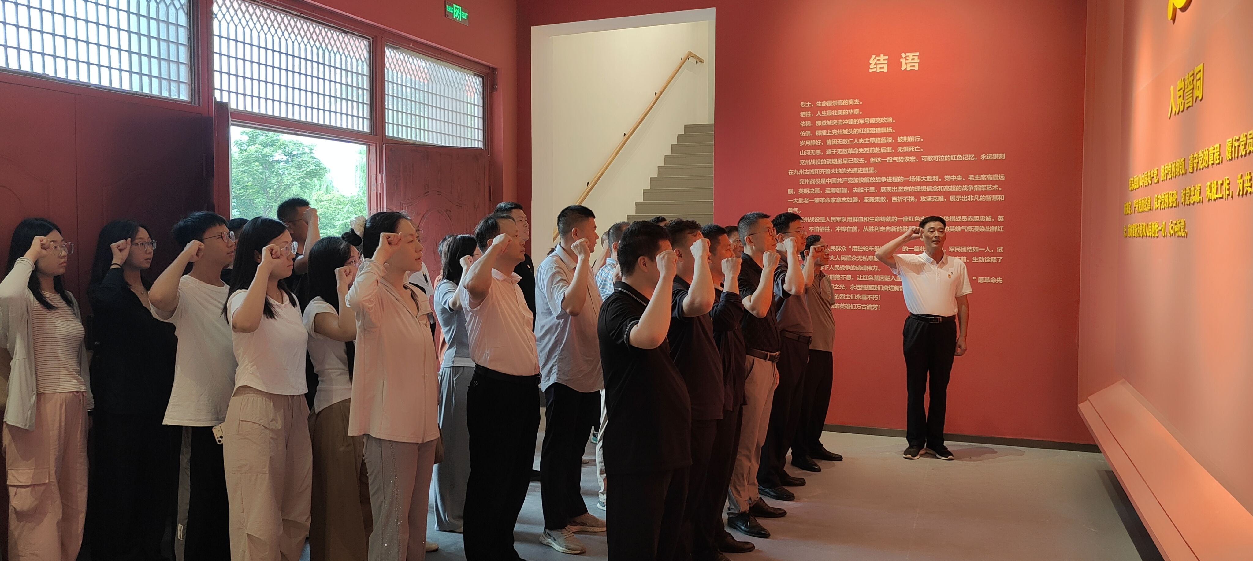 在烈士纪念碑和无名烈士墓前,全体人员整齐列队、静默肃立,向革命先烈们鞠躬致敬。随后,在讲解员的引领下,全体同志步入兖州战役纪念馆。馆内珍贵的历史影像、斑驳的革命文物、复原的战斗场景,将大家带回了那段血与火的岁月。 同志们凝神驻足,仔细聆听,深刻感受到革命先辈在民族存亡关头所迸发出的不畏强暴、血战到底的钢铁意志和天下兴亡、匹夫有责的深沉担当。