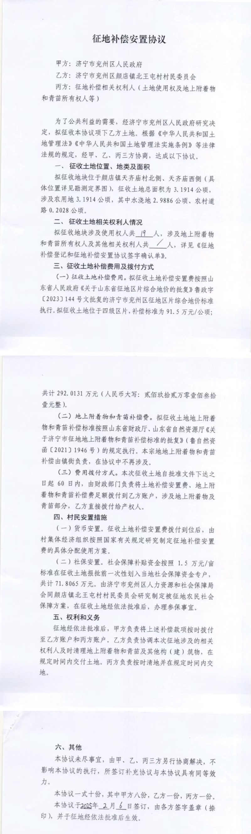 征地补偿安置协议 (北王屯)