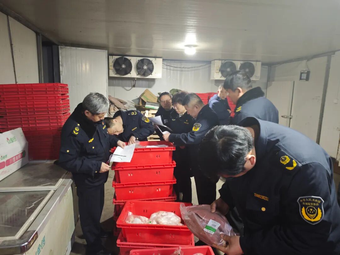 区市场监管局组成由党组成员带队,各食品科室、执法中队、市场监管所为成员的专业执法队伍,联合公安、检测中心等部门开展肉及肉制品食品安全“零点行动”。重点查处未经检验检疫、来源不明、注水注药、以次充好、未落实进货查验等肉类经营违法违规行为。全覆盖排查肉类批发商3家,现场对其肉及肉制品进行快检实验,对违法行为形成强力震慑,规范批发经营秩序,筑牢食品安全防线,守护群众“舌尖上的安全”。