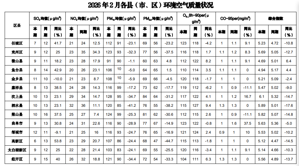 2026年2月份环境空气质量状况