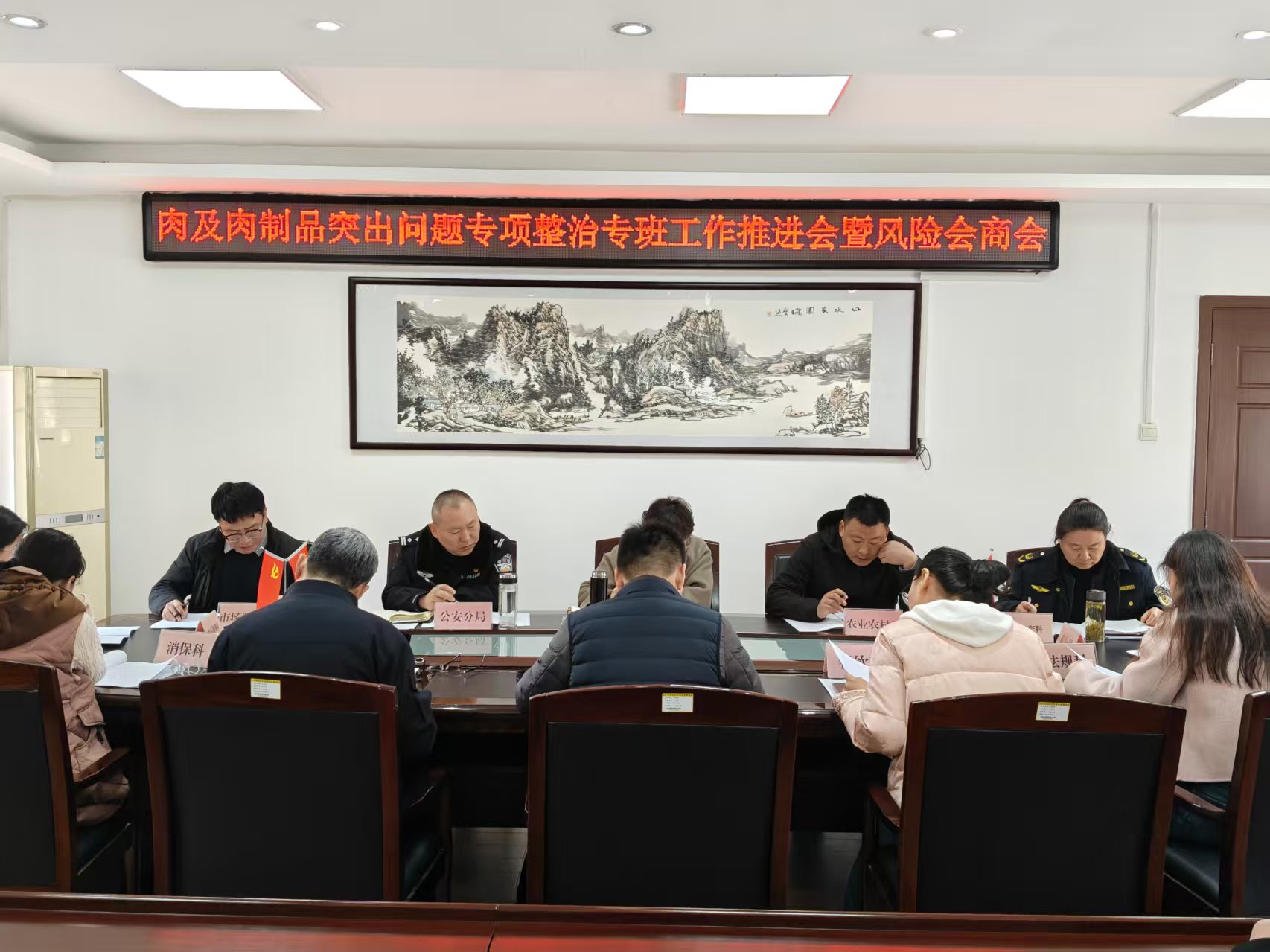 2026年3月20日,济宁市兖州区食品药品安全委员会办公室(区食药安办)组织召开全区肉及肉制品突出问题专项整治专班工作推进会暨风险会商会,进一步凝聚部门合力、强化责任落实,持续高压推进肉及肉制品全链条监管工作。区农业农村局、济宁市公安局兖州分局、区市场监督管理局等部门分管负责人及相关科室负责人参加会议。