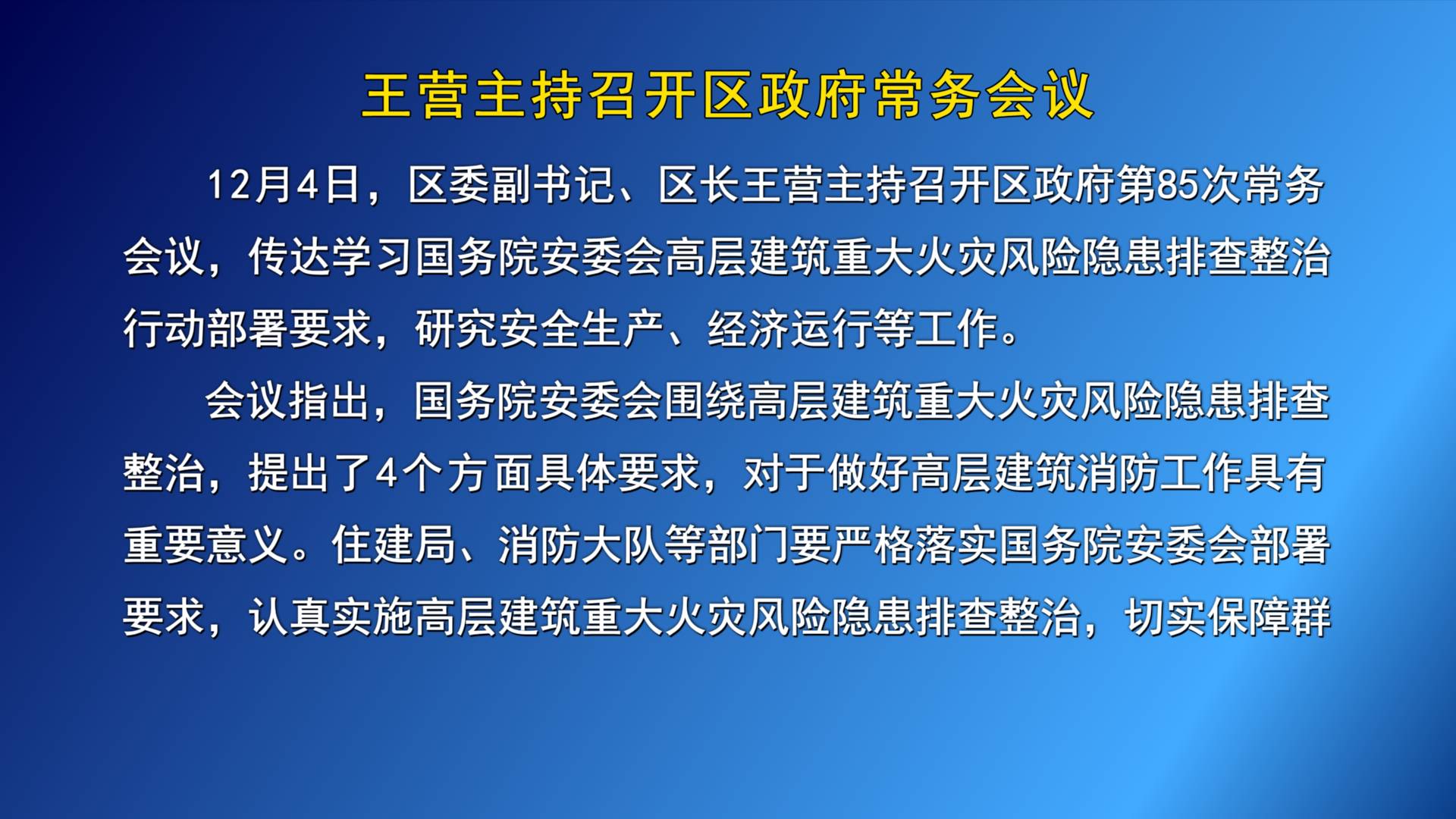 4月19日,区委副书记、区长王营主持召开区第十九届人民政府第53次常务会议。