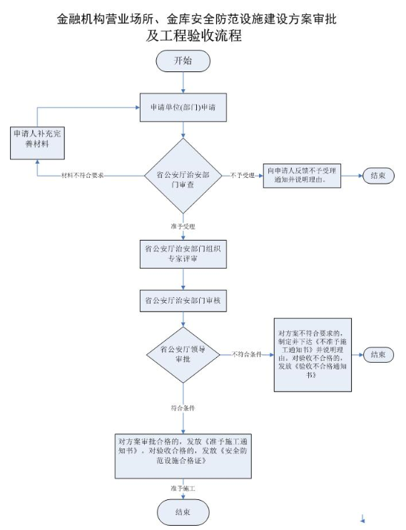 | 办理结果名称 | 金融机构营业场所、金库安全防范设施建设方案审批及工程验收 | 数量限制 | 无 |
