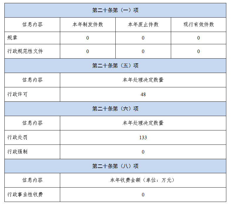 (七)其他有关文件专门要求通过政府信息公开工作年度报告予以报告的事项:无。