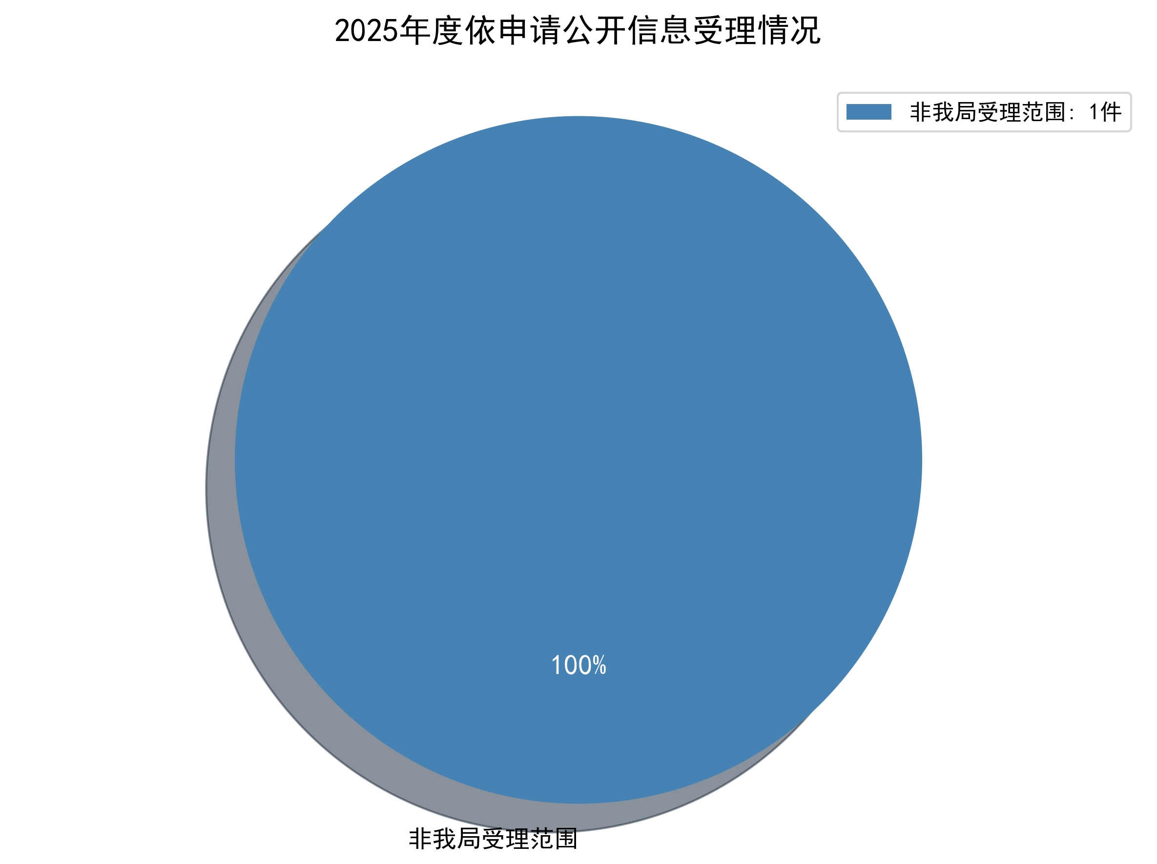 2025年度收到依申请公开信息1条,申请内容涉及发改领域,非我局受理范围,依法依规按时答复,未引发行政复议或行政诉讼,未收取任何费用。