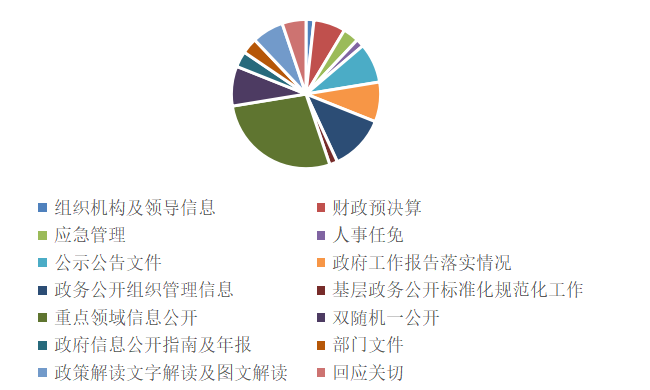 2022年,我局通过网上政府信息公开专栏及时公开政府信息及工作动态信息共62条,其中组织机构及领导信息1条、规划计划文件3条、权责清单1条、财政预决算4条、应急管理2条、人事任免1条、公示公告文件5条、政府工作报告落实情况5条、政务公开组织管理信息7条、基层政务公开标准化规范化工作1条、重点领域信息公开16条、双随机一公开5条、政府信息公开指南及年报2条。部门文件2条、政策解读文字解读及图文解读4条,回应关切3条,其中党组书记参与门户网站在线访谈1次,区商务局上线行风热线2次。