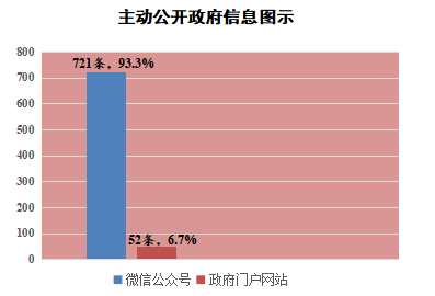 2022年,我镇高度重视政府信息公开工作,通过 “美丽新兖”微信公众号发布信息共计721条,约占比93.3%;通过“中国·兖州”政府门户网站政府信息公开栏目主动公开各类政府信息52条,约占比6.7%。