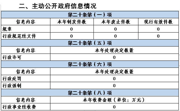 本报告内容包括总体情况、主动公开政府信息情况、收到和处理政府信息公开申请情况、政府信息公开行政复议和行政诉讼情况、存在的主要问题及改进情况、其他需要报告的事项等六部分内容。