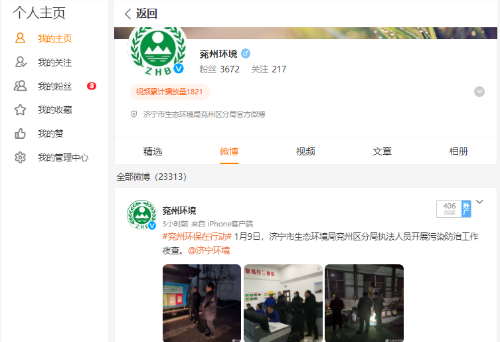 (三)充分发挥局政务新媒体作用,通过政务微信“兖州环保”和政务微博“兖州环境”及时发布生态环境执法各类信息,将生态环境执法各类信息撰写和发布作为科室、单位年度考核重要依据。