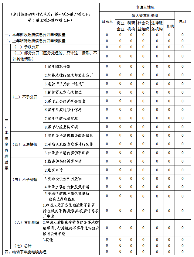 受理与处理情况:2024年未收到政府信息公开申请,与往年情况一致,保持了零申请的态势。