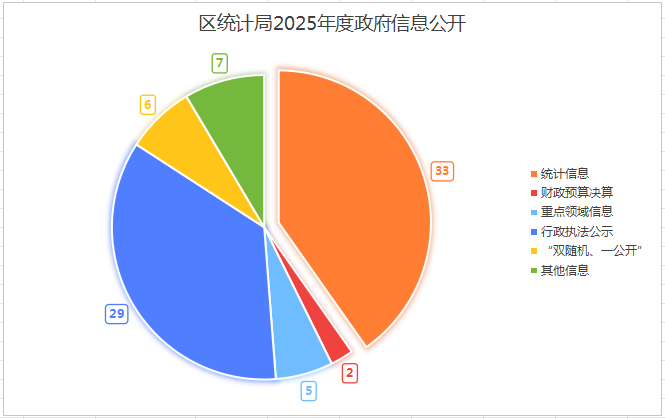 2025年,区统计局畅通线上线下依申请公开渠道,全年收到依申请公开2件,涉及统计数据咨询领域,依法依规按时办理2件,未引发行政复议或行政诉讼,未收取任何信息公开处理费。