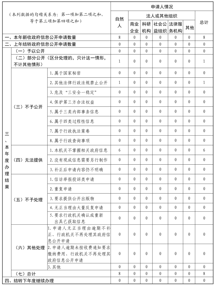 2023年我单位收到政府信息公开申请8件,比2022年增加1件,均严格按照办理程序,按时按要求答复,未引起行政复议和行政诉讼。2023年未产生信息公开处理费。