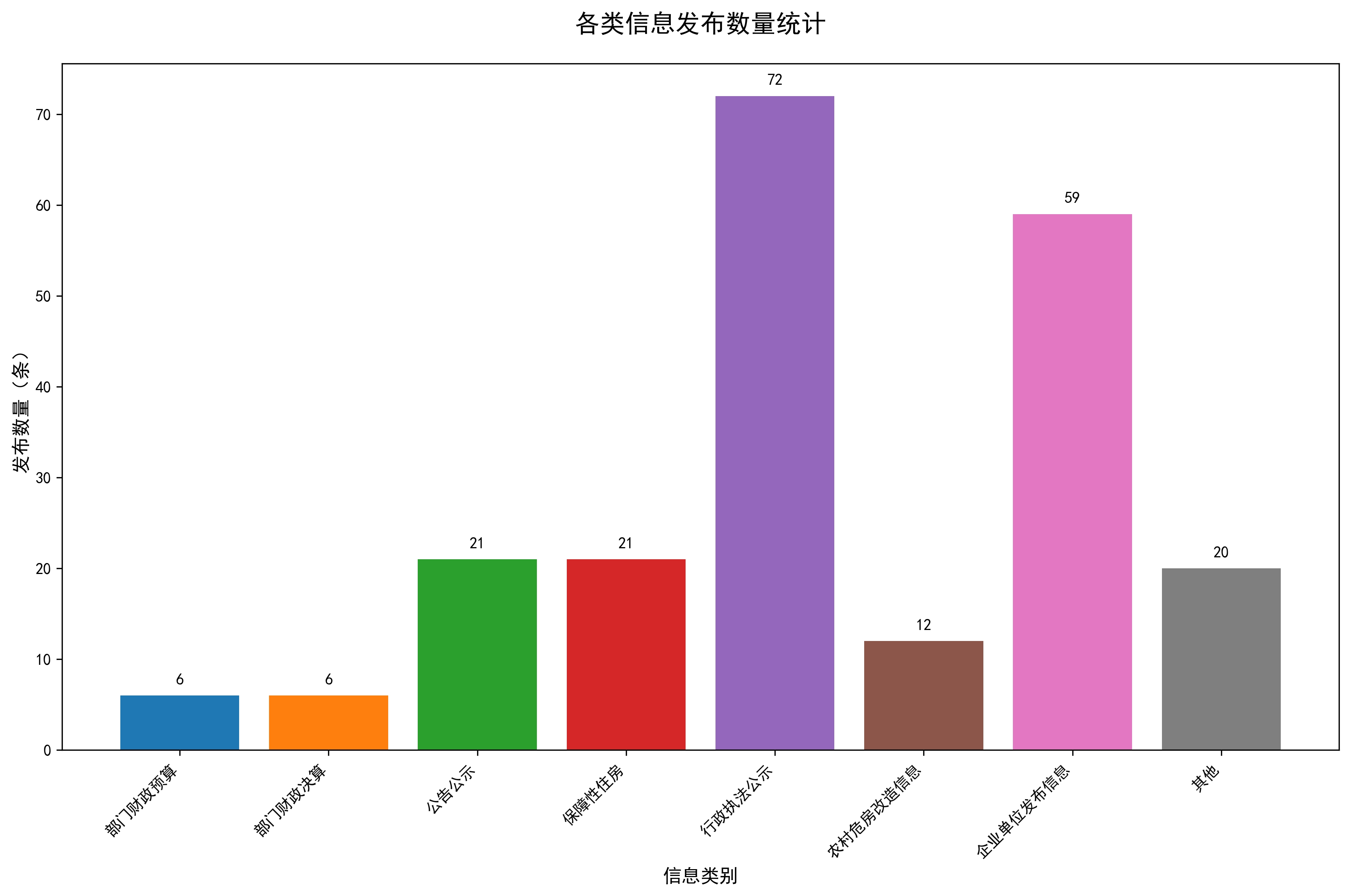 2025年,区住房和城乡建设局严格依规通过政府门户网站发布各类政府信息217条,涵盖部门动态、公告公示、农村危房、保障性住房等重点领域。具体分类如下:部门财政预算6条、部门财政决算6条、公告公示21条、保障性住房21条、行政执法公示72条、农村危房改造信息12条,企业单位发布信息59条,其他20条。