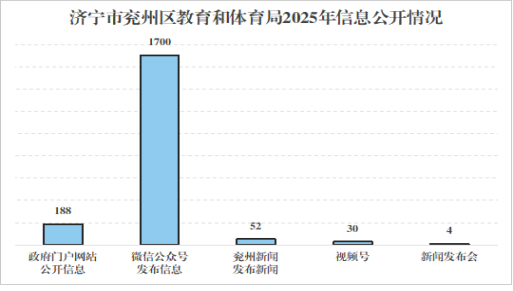 2025年,济宁市兖州区教育和体育局依托兖州区政府门户网站共发布信息188条,其中法定主动公开内容栏目公开信息147条,网站其他栏目公开信息41条。