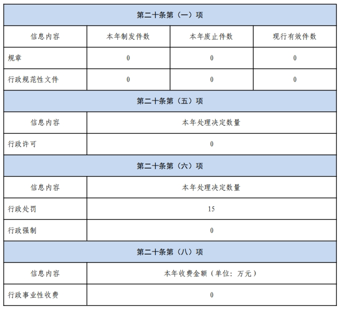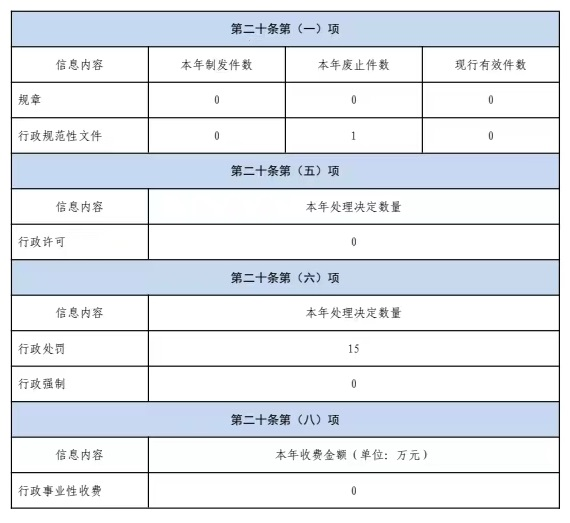 本报告内容包括总体情况、主动公开政府信息情况、收到和处理政府信息公开申请情况、政府信息公开行政复议和行政诉讼情况、存在的主要问题及改进情况、其他需要报告的事项等六部分内容。