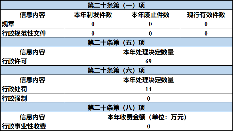 本报告内容包括总体情况、主动公开政府信息情况、收到和处理政府信息公开申请情况、政府信息公开行政复议和行政诉讼情况、存在的主要问题及改进情况、其他需要报告的事项等六部分内容。