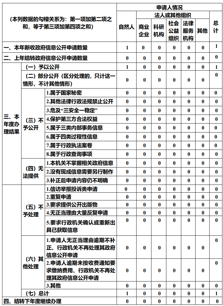 (五)本行政机关政府信息公开工作年度报告数据统计需要说明的事项