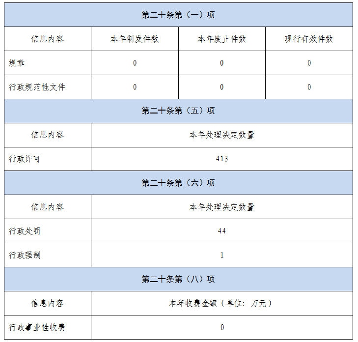 本报告内容包括总体情况、主动公开政府信息情况、收到和处理政府信息公开申请情况、政府信息公开行政复议和行政诉讼情况、存在的主要问题及改进情况、其他需要报告的事项等六部分内容。