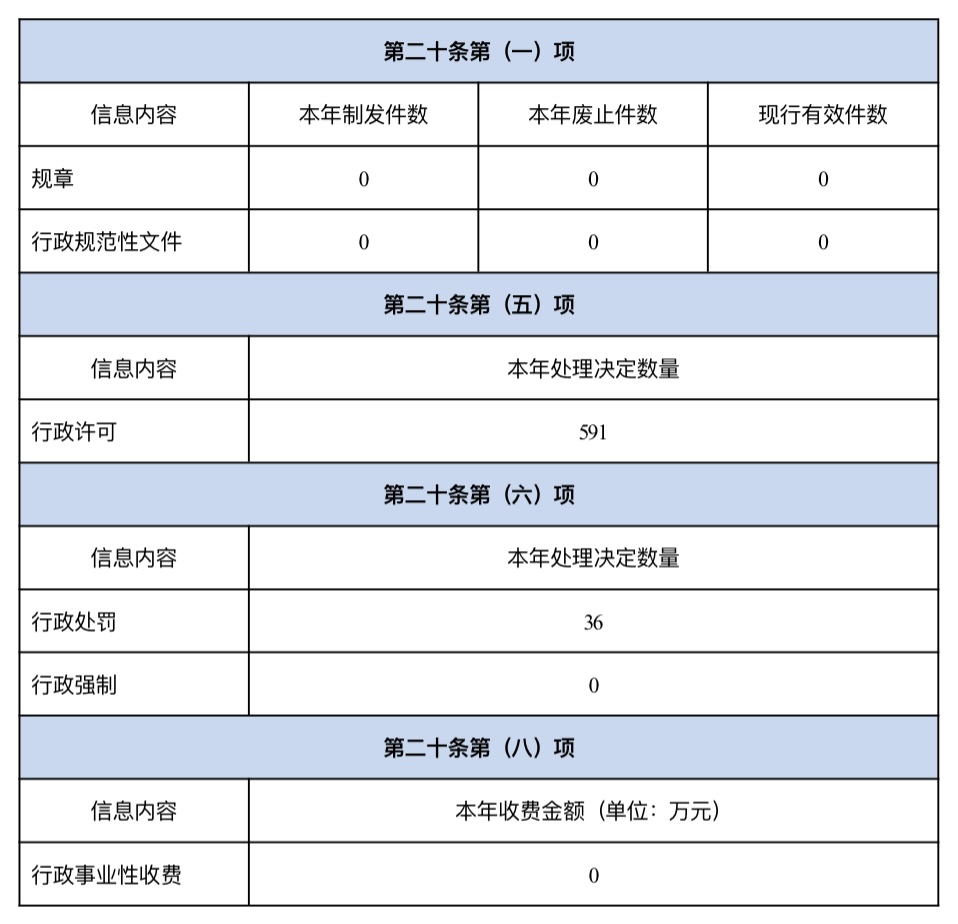 本报告内容包括总体情况、主动公开政府信息情况、收到和处理政府信息公开申请情况、政府信息公开行政复议和行政诉讼情况、存在的主要问题及改进情况、其他需要报告的事项等六部分内容。