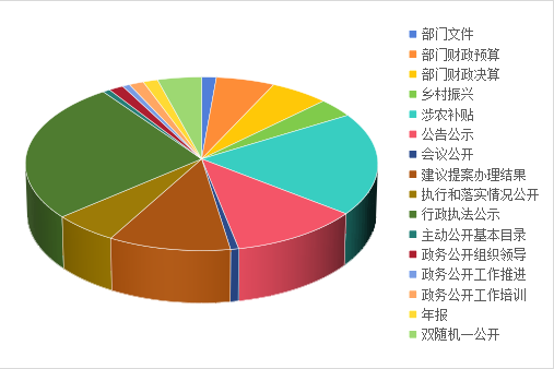 积极做好政府信息主动公开工作,共主动公开信息142条。其中,公开行政处罚结果信息23个,公开公告公示16 个,公开涉农补贴领域信息27条。承办的 14件建议提案办理答复做到100%主动公开。推进政策解读多元化,对有关工作年度报告等积极开展图表图解等多元化解读。