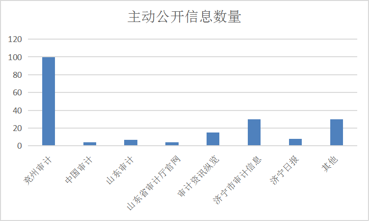 2022年,我局紧紧围绕区委、区政府中心开展工作,认真贯彻实施《中华人民共和国政府信息公开条例》,层层分解落实区委、区政府2022年工作任务,平稳、有序地推进政府信息公开工作。2022年,一方面,通过兖州区政府网上信息公开专栏及时公开政府信息共25条,其中机构职能信息2条、领导信息1条、部门财政预算决算3条、行政执法信息2条、主动公开基本目录2条,政务公开组织管理4条以及政府工作报告落实信息4条等。另一方面,加强政务新媒体建设。2022年,区审计局通过“兖州审计”微信公众号发布信息100篇;在《中国审计》发表4篇、《山东审计》发表7篇、省厅网站发表4篇、审计资讯纵览发表15篇,市局及《济宁日报》等媒体发表30余篇,《今日兖州》、《兖州信息》、兖州政府网站发表30余篇。通过多渠道展示区审计局审计工作成果,审计机关良好形象在全市、全区范围内得到广泛宣传。