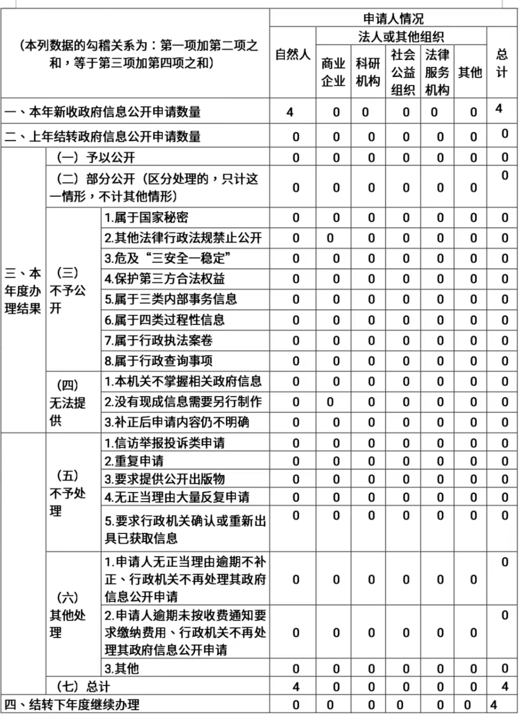 2022年,区财政局共受理政府信息公开申请4件,结转2023年办理1件,已按照我区和单位的依申请公开政府信息制度和流程进行回复。区财政局依申请公开政府信息没有收取任何费用。未收到因答复不当导致引起的行政复议或行政诉讼案件。