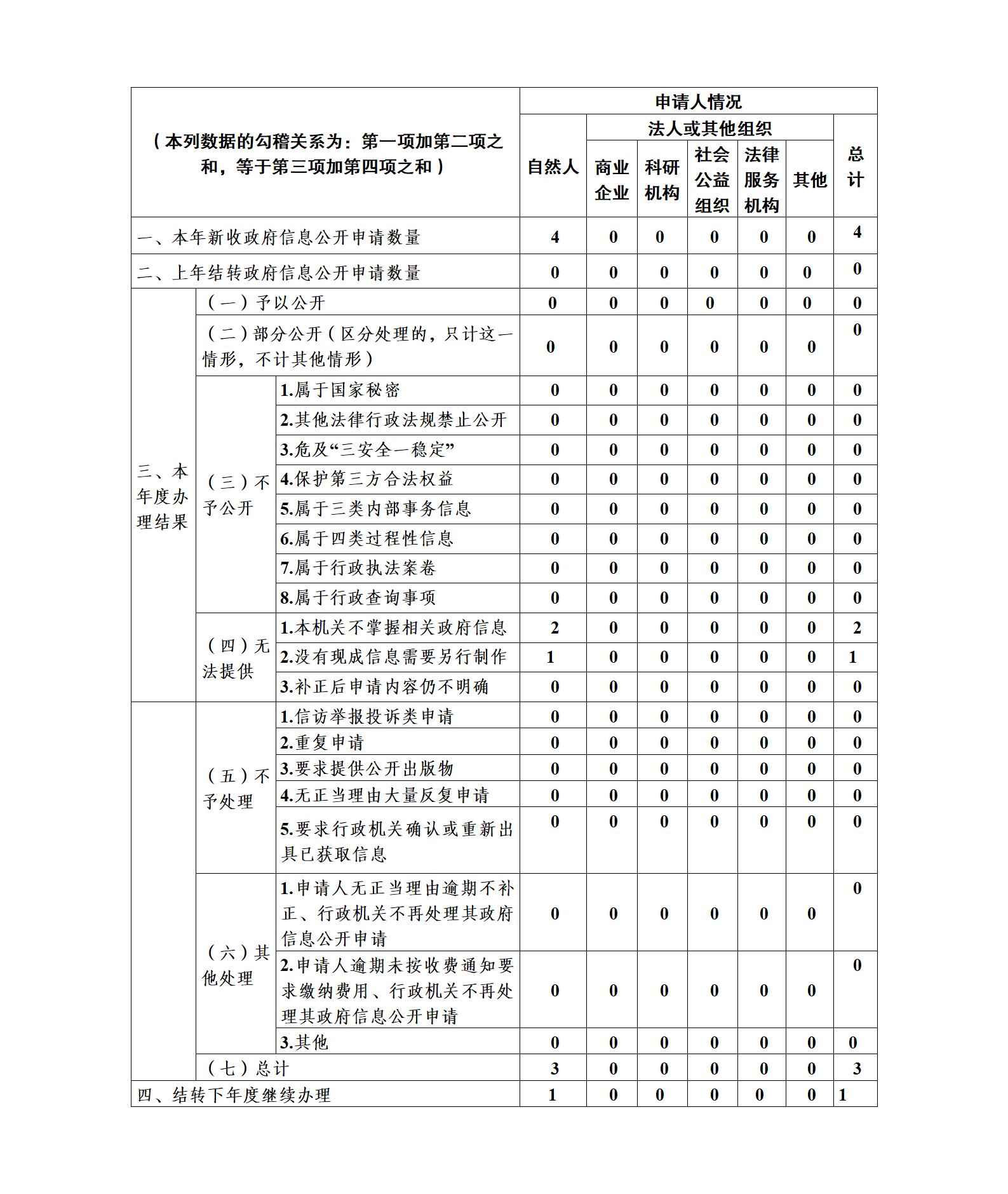 本报告内容包括总体情况、主动公开政府信息情况、收到和处理政府信息公开申请情况、政府信息公开行政复议和行政诉讼情况、存在的主要问题及改进情况、其他需要报告的事项等六部分内容。