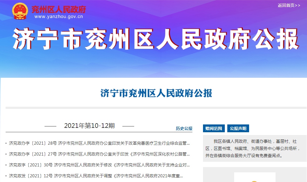 2021年,济宁市兖州区人民政府办公室认真贯彻落实《中华人民共和国政府信息公开条例》,紧紧围绕区委、区政府重大决策部署和群众关注的焦点、热点问题,继续坚持“以公开为常态、不公开为例外”,加强政策解读和政务舆情回应,完善政务公开制度规范,切实增强人民群众的满意度、获得感,推进政务公开工作提质增效,促进法治政府、创新政府、廉洁政府和服务型政府建设。
