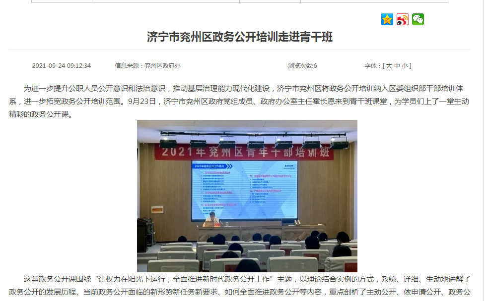 三是强化教育培训。继续将政务公开纳入青年干部培训班培训计划,区政府办公室主要负责人亲自到培训班授课。组织召开政务公开迎评考核专题培训会2次。