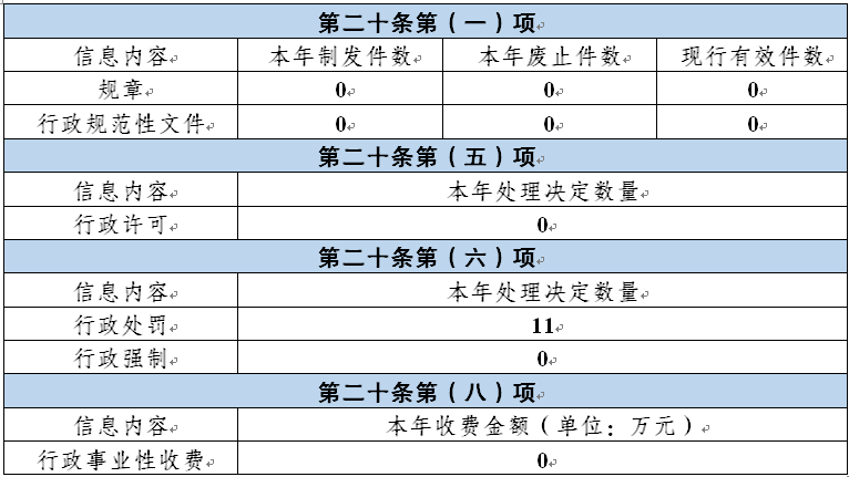 本报告内容包括总体情况、主动公开政府信息情况、收到和处理政府信息公开申请情况、政府信息公开行政复议和行政诉讼情况、存在的主要问题及改进情况、其他需要报告的事项等六部分内容。