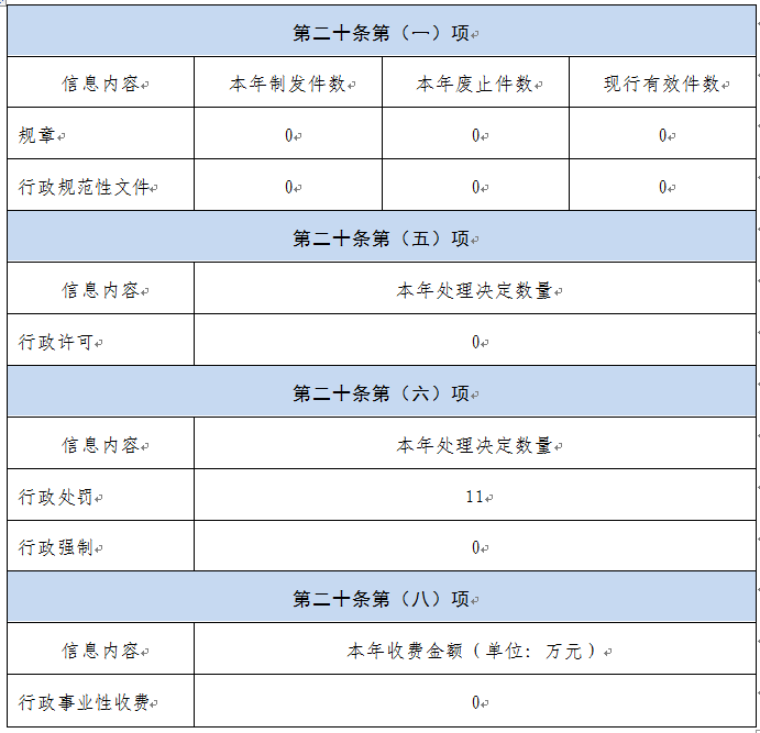 本报告内容包括总体情况、主动公开政府信息情况、收到和处理政府信息公开申请情况、政府信息公开行政复议和行政诉讼情况、存在的主要问题及改进情况、其他需要报告的事项等六部分内容