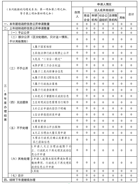 (七)其他有关文件专门要求通过政府信息公开工作年度报告予以报告的事项:无