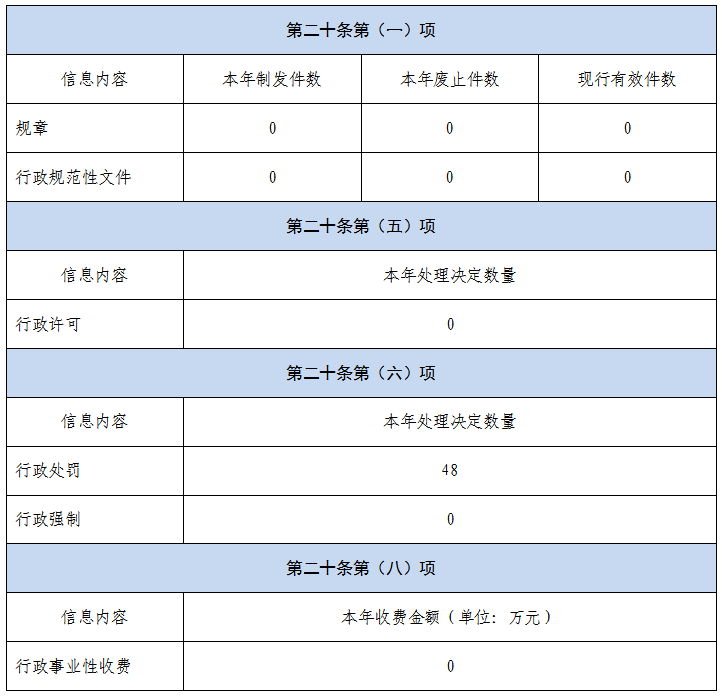 本报告内容包括总体情况、主动公开政府信息情况、收到和处理政府信息公开申请情况、政府信息公开行政复议和行政诉讼情况、存在的主要问题及改进情况、其他需要报告的事项等六部分内容。