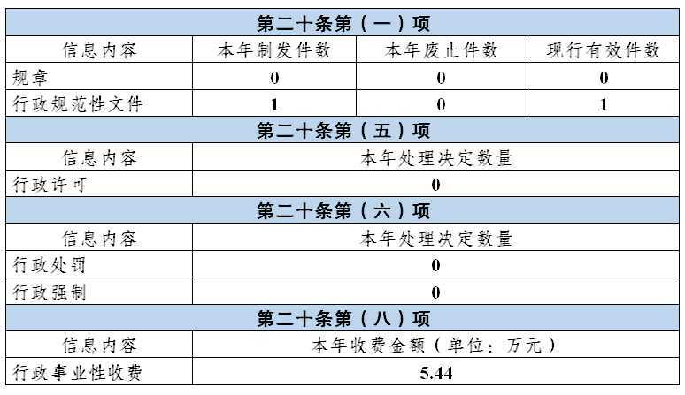 (七)其他有关文件专门要求通过政府信息公开工作年度报告予以报告的事项:无。