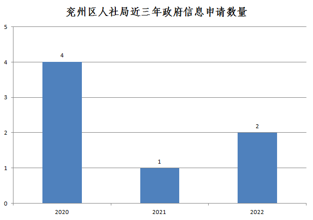 2022年度兖州区人力资源和社会保障局接到政府信息公开申请2件,较2021年增加1件。所有公开申请均严格按照《政府信息公开条例》等有关规定进行办理和答复,不存在收费情况。2022年未发生因政府信息公开被行政复议、提起行政诉讼情况。